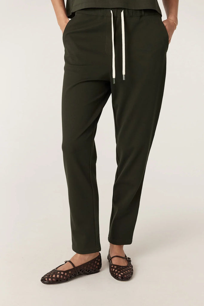 The Luca Twill Jogger is a relaxed fit, tapered leg style crafted from stretch twill Ponti fabric. Designed with an elasticated waist and drawcord, it features functional front pockets and back patch pockets for everyday ease.