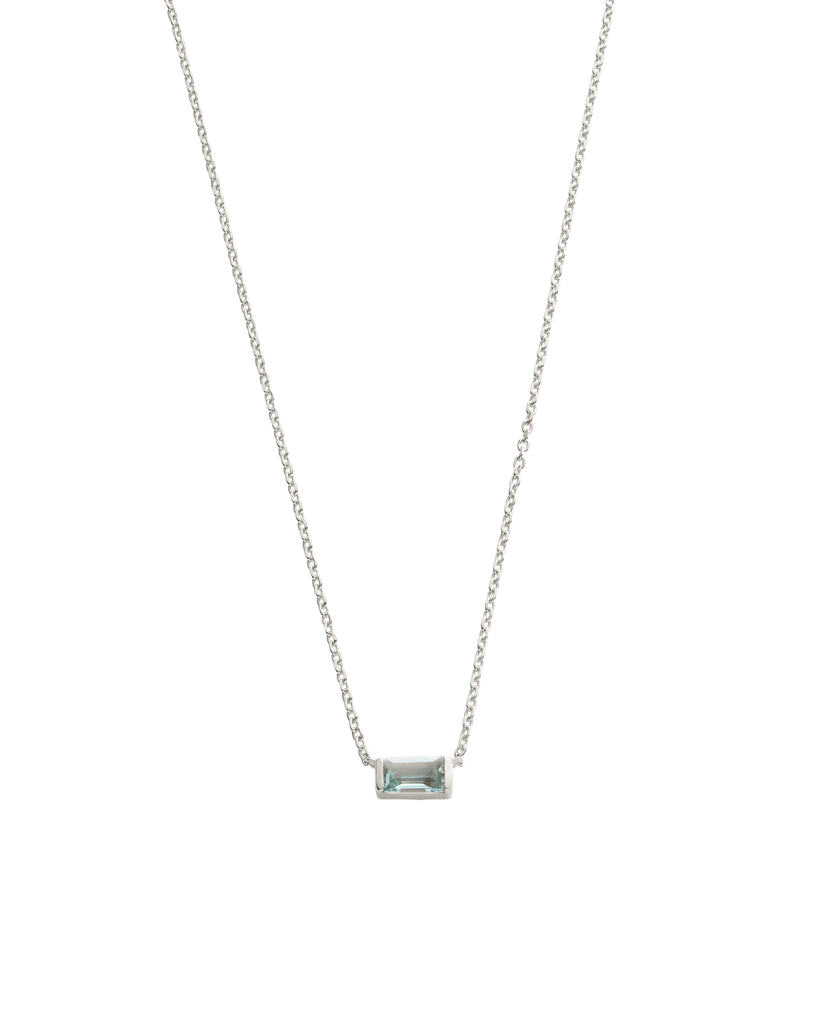 The Baguette Birthstone Necklace is a contemporary reimagining of a timeless staple – infusing cosmic stones with a clean-cut silhouette. Each stone – embodying celestial energy – marks the month your story began, while serving as a daily emblem of your story. This pairs-with-everything piece features a clean, baguette-cut semi-precious stone set within a fine trace chain.