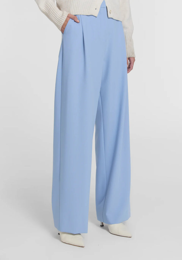 An elevated classic, the Idol Pant is realised in a summer blue hue. Falling to a full length, wide leg silhouette, it features front tucks and functional side pockets, pairing seamlessly with V&W essentials or the Divinity Shirt for effortless, transseasonal tailoring.