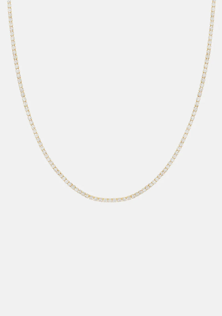 Sophisticated and timeless, the Aspen Tennis Necklace adds elegance and glamour to any look. Featuring a continuous row of zirconia stones with an extension chain embellished with a charm for the perfect fit. A special gift for yourself or someone special.