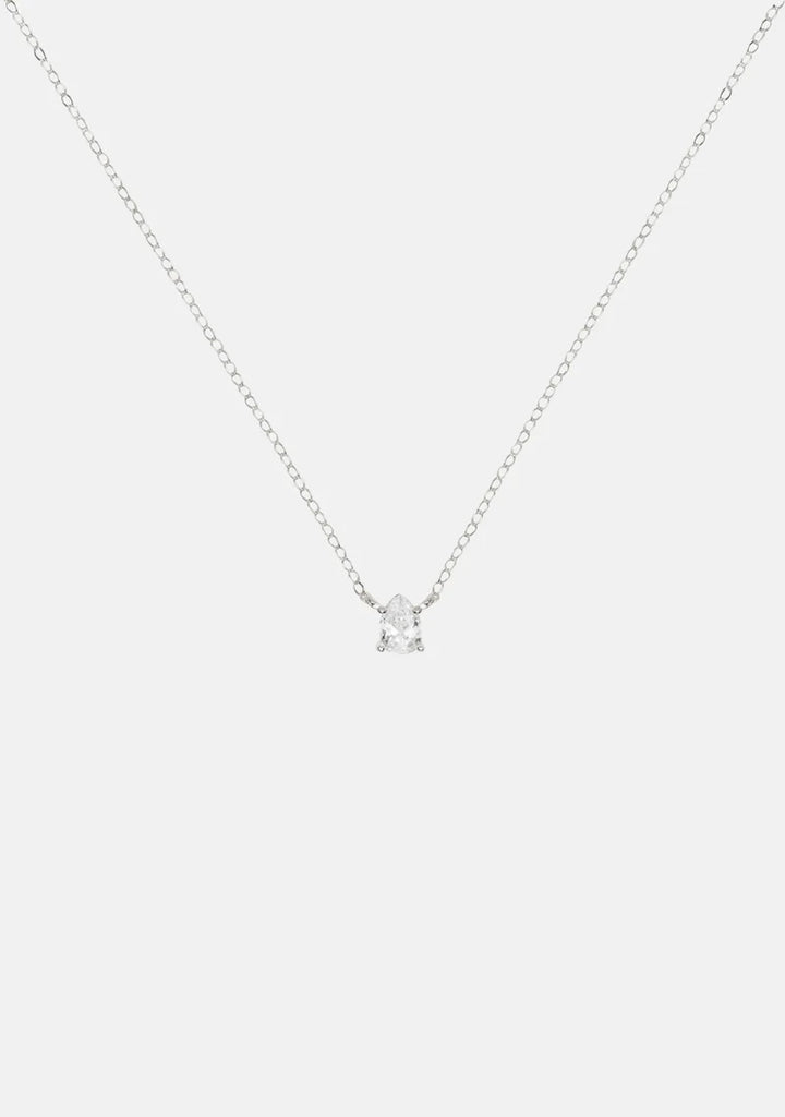 The Valentine Necklace features a striking pear shaped cubic zirconia pendant on a delicate silver chain - let your décolletage twinkle with this timeless design.