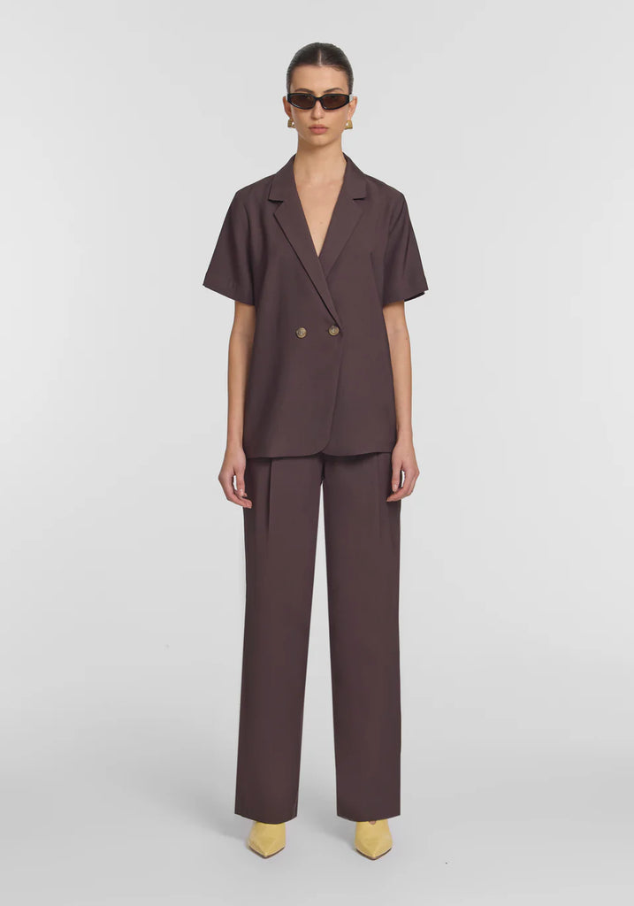 The Hepburn Shirt returns in a rich chocolate hue, tailored from our signature bamboo blend. Featuring a double-breasted front, relaxed fit, and back vent, it offers timeless versatility. Pair effortlessly with the Ivanhoe Pant for a refined set, or style back with denim for polished ease.