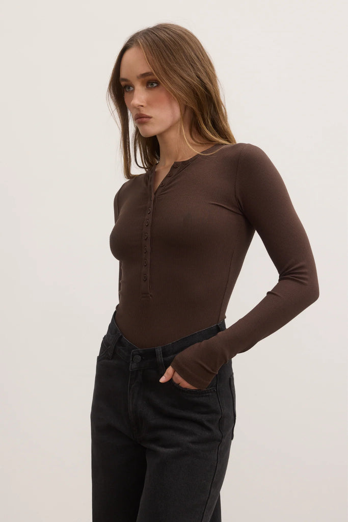 Introducing one of our best-sellers, our Lara Bodysuit. Our Lara highlights the beauty of minimalist style. Featuring a high crew neckline, button down feature through the front of the garment and a fitted silhouette. She is endlessly versatile and will quickly become your favourite wardrobe basic.